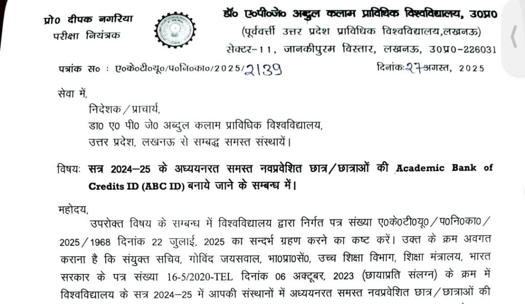 AKTU ABC ID Creation Related: Dr. A P J Abdul Kalam Technical University AKTU ने अभी अभी आज 27 August